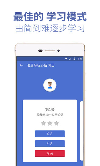 2,全球数百万法语学习者随身工具,轻松学法语,标准法语学习助手,涵盖法语字母表标准发音,精选法语必学50词,看电影学法语,各类场景法语教程。所有资料具有法语翻译,让其快速入门法语(french)