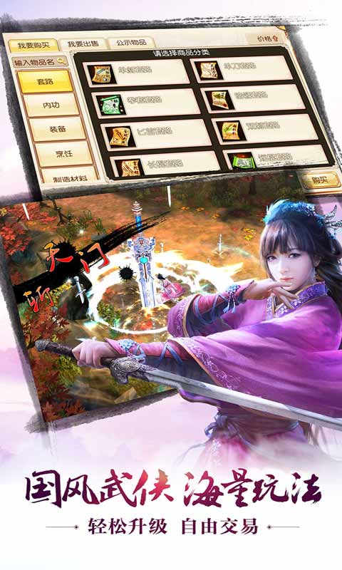 延续《九阴真经》核心玩法精髓,《九阴》手游在掌上世界再现刺探、夺书、闯禁地、团练、装备打造、自由交易等多元化玩法体系。同时切磋比武、天梯擂台、武林大会、多人战场、帮会群战等丰富的PVP玩法让整个江湖激情满满,大江湖自由PK让你无时无刻享受真实的掌上武侠世界。
