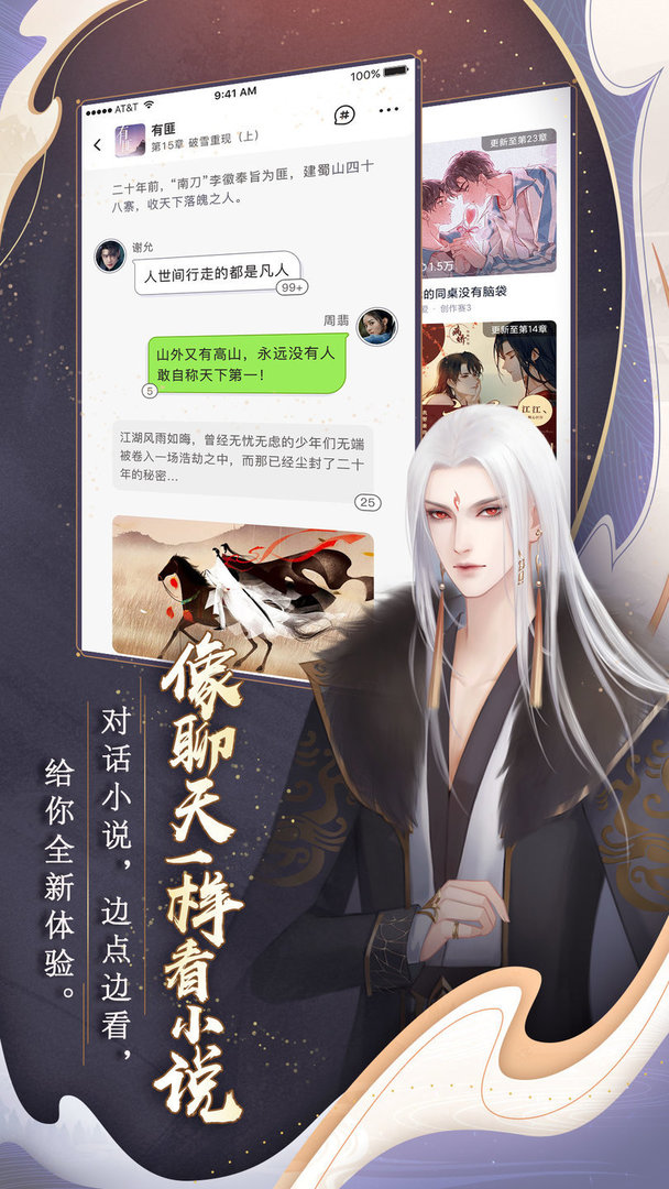 互动式图文小说阅读平台。现代言情、逆袭重生、古风仙侠、言情耽美、狼人杀推理、经营养成、奇妙快穿、模拟人生,在闪艺你就是主角!包罗多种电子书互动式小说阅读器、男生女生休闲必备! 玩闪艺,带你进入阅读新方式。如需帮助或意见反馈打开闪艺告诉我哦~还可以联系客服小姐姐qq:1730407736 咨询解决