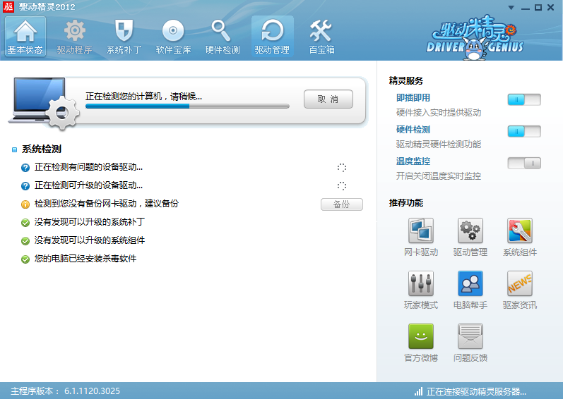 驱动精灵2012扩展版采用了全新设计的驱动引擎,大幅增强了硬件识别能力,寻获驱动效率更高更准确。2012引擎革命性的新增了硬件设备问题判别的功能与相应算法,使之在用户电脑存在驱动问题时发挥出更大作用。另外,新的驱动精灵内核对设备驱动支持进行了重新优化设计,加上与之匹配的全新驱动更新模式,将给您带来全新的驱动升级体验!