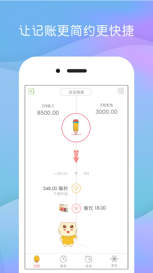 拍照就记账,轻松更有趣。用相机记录你资金的明细情况。