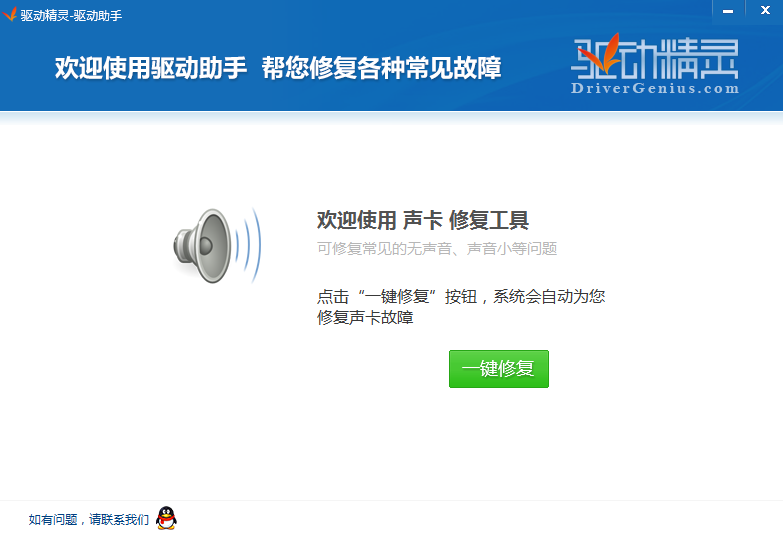 有时候我们重装系统后,会发觉电脑声音特别小或者是电脑没声音,就是安装了音频管理器也没用,这个时候就推荐使用驱动精灵的声卡修复工具,一键修复声卡问题,快速精准,是驱动精灵专门决解声卡故障的驱动助手。