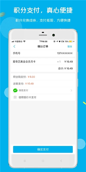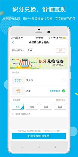 2.【积分兑换】:支持查询兑换中国移动、中国电信、中国联通、东方航空的积分,也支持兑换工商银行、民生银行、邮储银行、富滇银行积分,兑换成的超市代金券直接当现金消费;