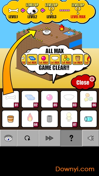画风精简,玩法也比较通俗易懂,包含骨头、水、球、碗、桶、管、人等十种物体,一次凭借点击画面来生成不同的建筑,期间每一次的点击都会对结构造成影响,直至最终都达成max则为胜利。