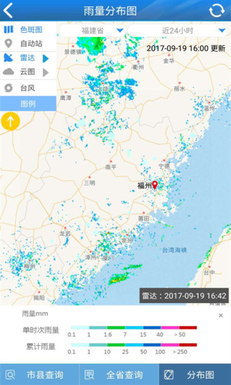 风雨查询:新增气温风况当日极值统计功能。雨量分布图雷达回波上线,提升短临服务功能。