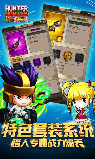新全职猎人是一款完美还原动漫剧情的角色扮演游戏,与我们的主人公一起大战幻影旅团吧,体会念能力的魅力,一起来天空之塔打擂台吧!