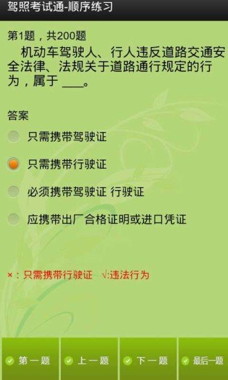 驾照考试一点通,即时更新试题,最常见的驾校试题,包括小车、货车、客车等驾照笔试理论题,包含章节练习、顺序练习、随机练习、模拟考试、查看巩固错题等多个功能板块。是您备考驾照的理想工具,祝你早日考得驾照!