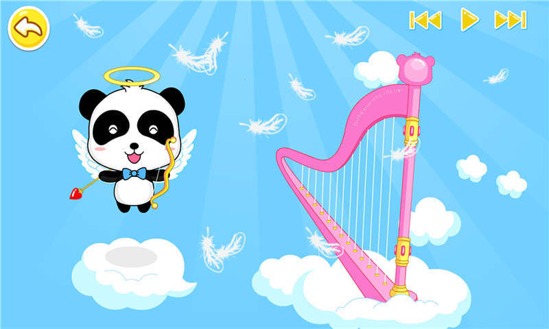 竖琴:熊猫天使是位伟大的演奏家,站在云端,为宝宝们演奏一曲曲动人心魄的歌曲。