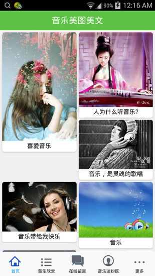 音乐美图美文app是一款收集音乐,图片,文章的阅读软件。动听的音乐,唯美的音乐,感人的文章总是能给人带来美好的感受,有的人爱音乐、有的人爱文章,但是无论喜爱什么 ,“ 音乐美图美文”都能满足你的一切感官!