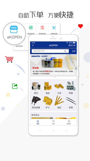 我的小松以最终用户为目标用户,与kofacs、kopen、komtrax实现数据互联,加强用户与小松中国、代理店之间的沟通联系,提高小松品牌的服务能力和用户对品牌的认可,通过我的小松app可以随时与客户进行沟通,提高服务效率,方便实用,有效的提升了的客户的管理。