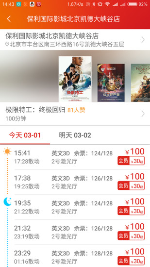 保利电影客户端,您的御用抢票神器来了! 独家抢票频道,一块钱看热映大片,每天都有惊喜彩蛋;