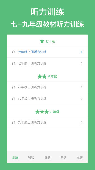 初中英语听力训练软件是一款针对初中生练习英语听力的软件。用录音机听听力?你out了!现在手机都可以同步教材听听力啦!这里除了有教材配套的听力,还有海量的课外练习、中考模拟练习哦,高清的音质,快来试试吧!喜欢的朋友快来体验吧!