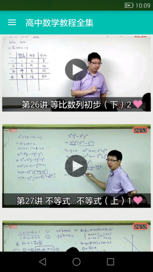 高中数学教程全集app是一款专门为高中生学习数学设计的软件。上课没有听讲错过了数学课怎么办?高中数学教程全集来帮你。这里有著名数学教师来讲课,详细又认真,保证你以后数学成绩杠杠的!喜欢的话就来体验吧!