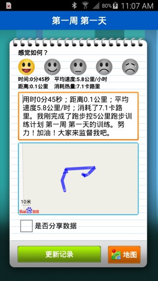 3、内置新浪微博的接口,可一键设置快速发送您的训练信息到微博上,与更多好友实时分享