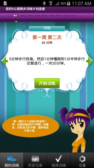 软件中提供免费的CoolRunning官方Couch-to-5K?训练计划是目前广泛使用的跑步训练计划,该计划已帮助上千万初级跑步爱好者完成了减肥瘦身的健身目标,并训练他们成功完成5公里的跑步比赛。跑步控把将跑步训练计划搬到了您的手掌中,无论身在何处,本训练计划全程提供实时语音提醒、训练安排以及训练内容的记录功能,督促并鼓励您完成既定训练目标,让您不断挑战自我进而通过9个星期的系统训练后毫无压力地跑完5公里!