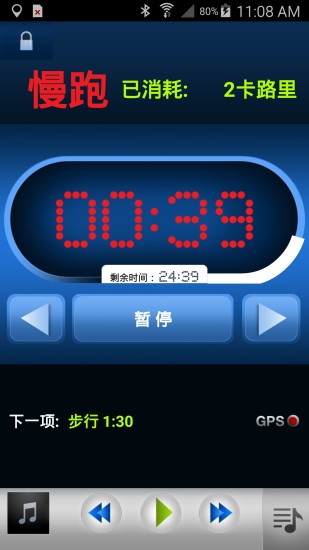 7、在GPS不可使用的状态下(比如使用iPod Touch, 或进行室内锻炼时),也可以继续你的训练