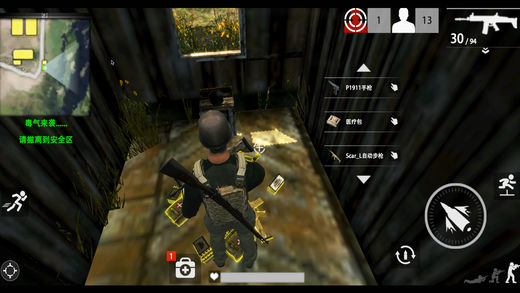 游戏每隔几分钟会有毒雾蔓延岛屿,安全区域也会随着时间的流逝不断缩小,逐步将所有玩家渐渐集中至一个小的范围。