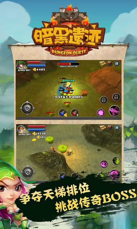 纯美3D画面,享受厮杀快感,刷怪掉宝升级,经典暗黑玩法,三大经典职业,百种技能组合勇闯地下遗迹,刷爆极品装备,争夺天梯排位,挑战传奇BOSS,一切尽在《暗黑遗迹》。
