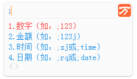 (3)分号可以输入数字、金额、时间、日期。如图所示: