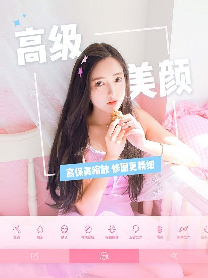 针对iPad大屏优化的高保真缩放,让高级美颜更精细,更自然!编辑功能大升级,裁剪、旋转、高级柔焦、晕影、增强、清晰度、智能补光、曝光修复……修出高质感大片!滤镜、磨皮、肤色、祛斑祛痘、瘦脸瘦身、五官立体、增高、眼睛放大、缩小鼻翼、亮眼、淡化黑眼圈、美白牙齿……满足你所有的美颜小心机,美得自然才高级!