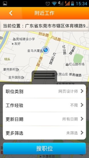 6、搜职位:优化精确搜索外,增加了附近工作,让您在地图上轻易地寻找目标地点附近的工作。