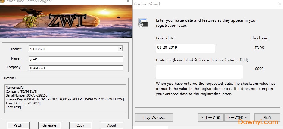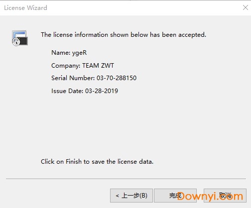 13、再将注册机中的lssue date栏中的字符复制到注册界面中的对应框中,点击下一步。