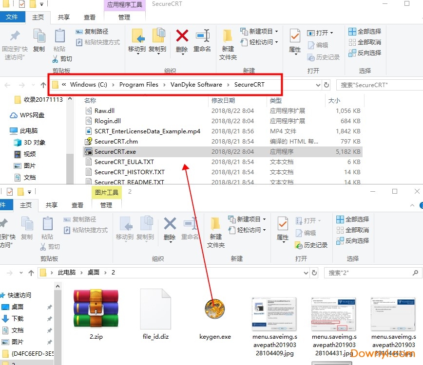 1、找到软件安装路径,默认路径为:C:\Program Files\VanDyke Software\SecureCRT,将注册机拖入里面