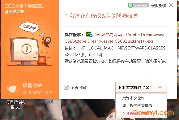这里会提示报毒,我们点击不再提醒,并且允许程序所有操作,不然安装不上,如图: