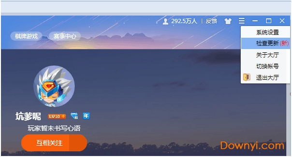 玩家可以选择在线升级大厅,即可解决问题。升级位置如下图提示: