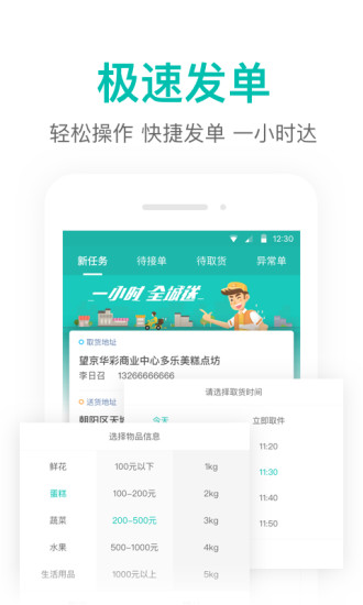 1.填写收件地址输入电话即可联想历史地址,发单更快捷!
