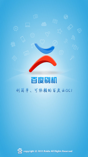 百度刷机是百度公司出品的一款Android刷机软件,支持多款主流安卓机型的一键刷机。它不需要电脑及数据线,在手机上就可以体验一键刷机的乐趣,整个刷机,为您提供完美刷机体验!目前百度刷机支持刷最新百度云OS公测版及正式版,百度云OS的粉丝们不容错过哦!后期版本将支持更多机型和第三方ROM的一键刷机,敬请期待!