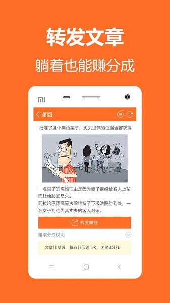 用户可以自主发布趣味内容分享给笑咖们同乐,还能转发文章到朋友圈赚取高额分成。同时,邀请好友安装也将获得奖励哦。屁屁笑话,让你尽情笑掉节操!