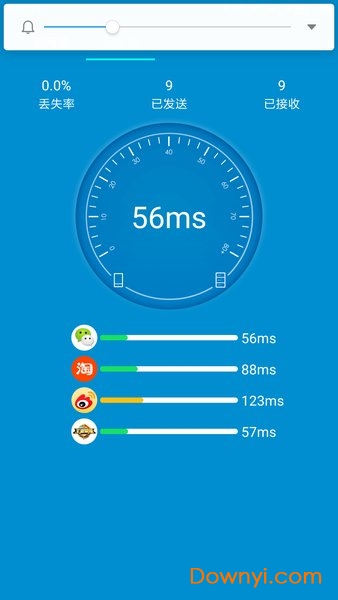 2. 测试网络延迟,app自动连接最热门的服务器并测试延迟,比如微博、微信、王者荣耀等。