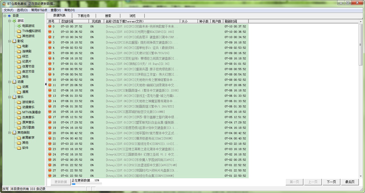 7.实现Torrent文件信息本地化,可把相关BT发布网站上最新发布的Torrent文件信息下载到本地硬盘,方便浏览;