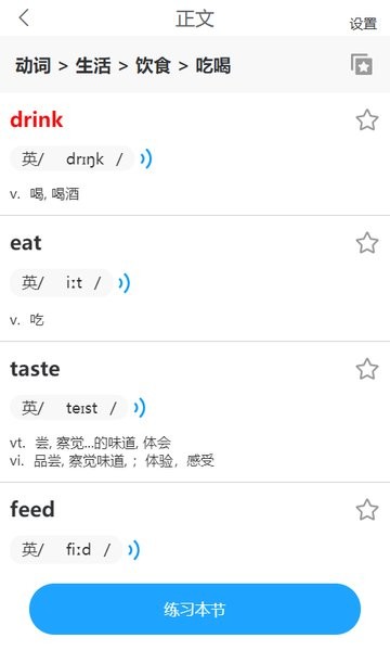 分类快速背单词app采用艾滨浩斯记忆曲线科学记忆方法,为你带来可以快速记忆英语单词的手机软件。每天为你推荐生词,个性化记忆,每天依据欢迎语,让你学习更积极,详细的听说读写学习功能,让你学习英语更轻松!