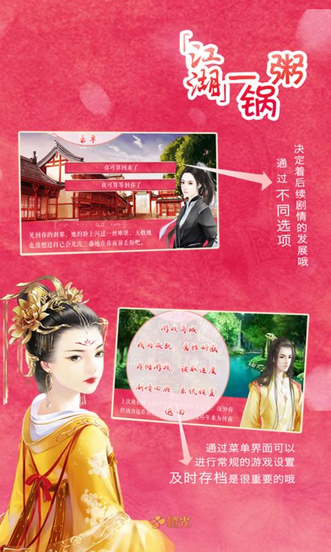 江湖一锅粥修改版是一款唯美的恋爱类手机游戏,游戏充满古代画风元素,你将扮演角色在江湖中闯荡,在游戏中你要不断提升自己,并结交恋人,故事剧情跌沓起伏,扣人心弦,让你体会江湖中的儿女情仇,快来下载体验吧!当易网提供下载!