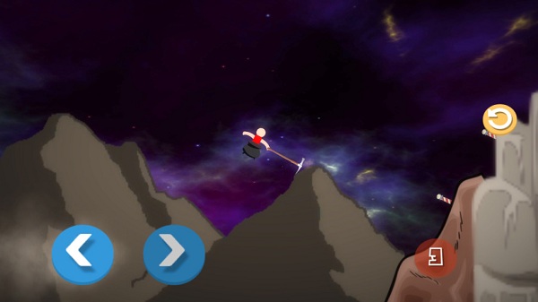 1、玩家控制一个坐在似乎是缸里的人,用一把榔头不断往上爬,操作极其简单;