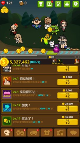 玩家可以用下面的功能列升级乞丐的技能、购买宠物、进入新区域或购买乞丐的衣物等,随着等级提升所需花费也会越来越高,离开游戏后也会持续收入,多升级乞丐并不会太吃亏;