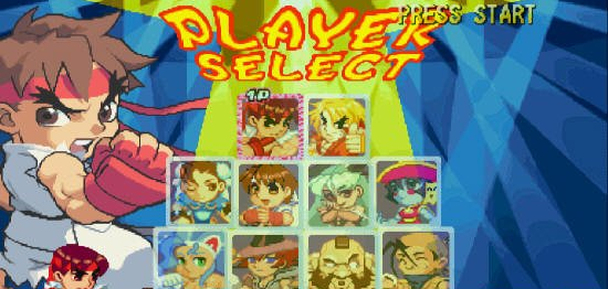 这个游戏是街头霸王的Q版+搞笑版。说它是Q版,是因为里面的角色都是街霸里人物的Q版形象;说它是搞笑版,是因为每个角色在发动一定的招式或攻击时,都会变成某一个职业并用职业道具攻击的形象(比如春丽会变成特种刑警,吸血鬼会变成俏护士),战斗的效果令人喷饭。
