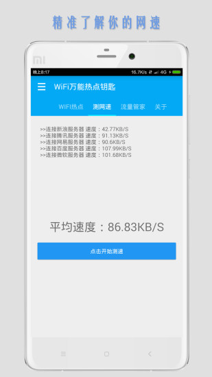 拥有WIFI网速测试功能,让你了解自己的网络速度;