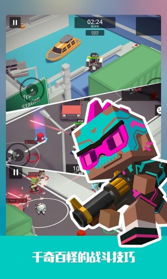 《城市大乱斗》是一个45度俯视角,3d像素风,真人实时对战类(io类)射击类手机网络游戏。在游戏中玩家会通过控制移动和射击的方向比拼各自的竞技技巧,同时简约干净的美术风格,变化丰富的武器系统,乐趣十足的地图场景,会给玩家带来畅快淋漓的战斗体验。