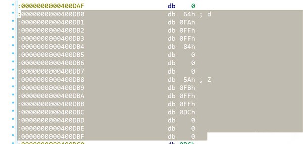 在操作IDA的时候,经常会遇到需要创建数组的情况,尤其是为了能方便我们看字符串的时候,创建数组显得非常必要,以下我随便找了个数据来创建数组