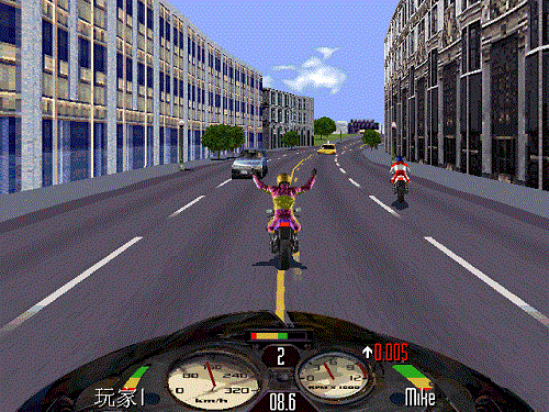 3、比赛进行期间,按 V 键可查看游戏版本;按 F10 为切换/显示/隐藏摩托车的仪表面板;小键盘的“+ -”键为改变游戏背景的贴图颜色。