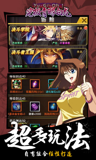 究极青眼白龙修改版游戏天朝劲爆福利手游,福利礼品奖励堆起来足够环绕地球,不信你试试!武藤游戏、海马、黑魔导、青眼白龙,这一个个熟悉的名字,足以勾起我们儿时的快乐回忆,现在让我们一起进入《究极青眼白龙》的世界,与他们携手战斗,拯救世界!